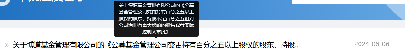 另外,近期博谈基金也提交了《变更执有百分之五以上股权的鼓吹、执股不及百分之五但对公司治理有枢纽影响的鼓吹或骨子限制东谈主审批》。